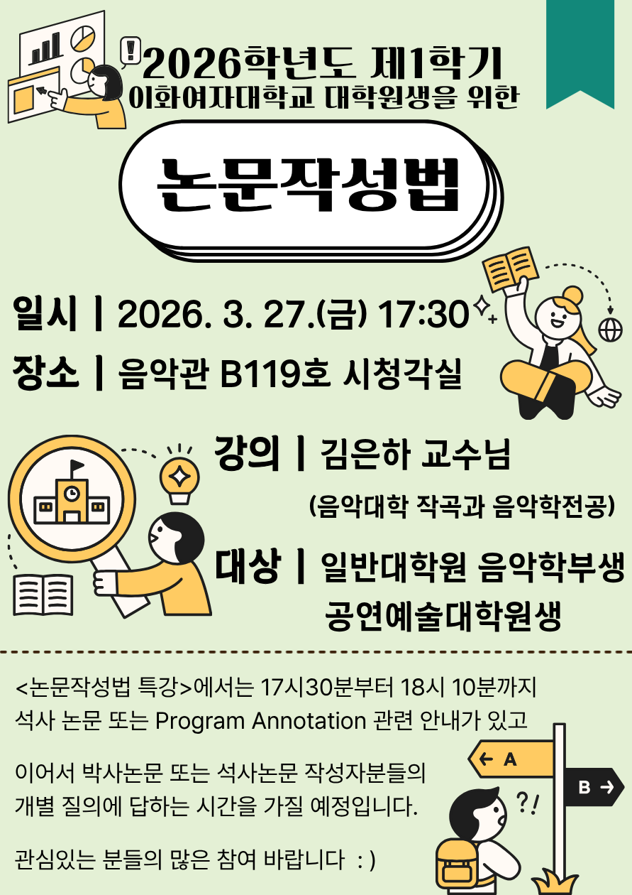 [학사] 2026-1 대학원생을 위한 논문작성법 특강 안내(3. 27.(금) 17:30)