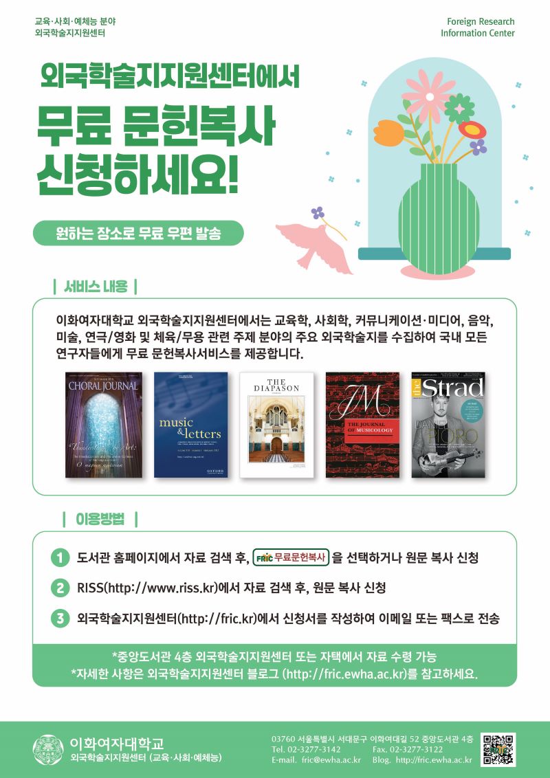 [기타] [외국학술지원센터]교육∙사회∙예체능분야 저널 무료 문헌복사서비스 안내