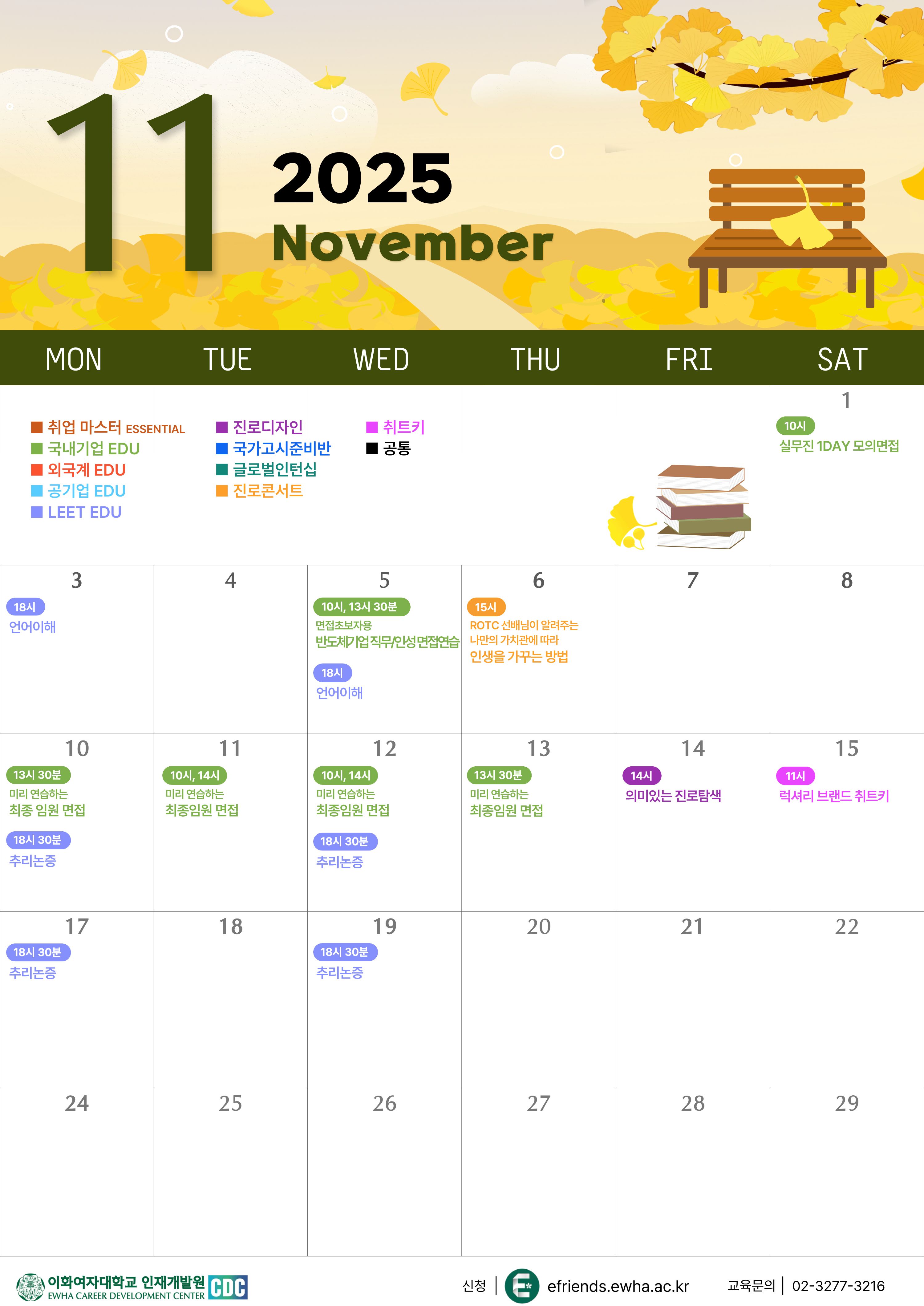 [학사] 25년 11월 진로취업교육 일정 안내(25년 11월캘린더)