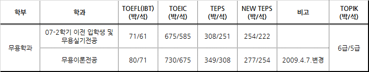 4. 대학원 음악학부 및 무용학과 합격 기준
