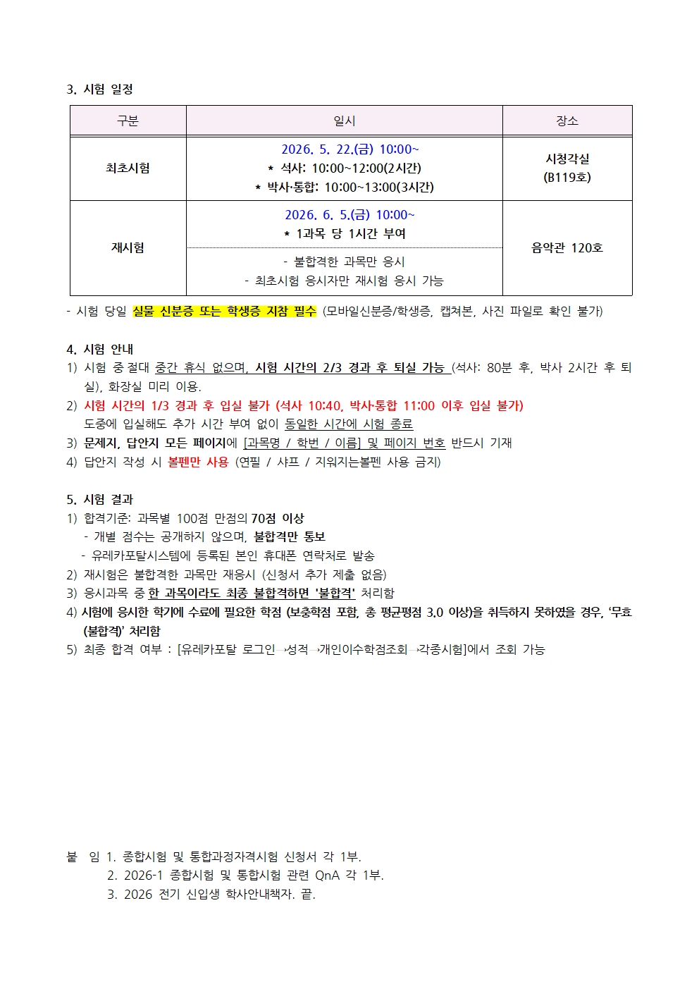 붙임2-1. 2026-1 종합시험 관련 QnA.hwp